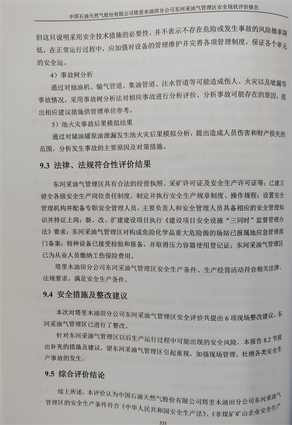 中國(guó)石油天然氣股份有限公司塔里木油田分公司東河采油氣管理區(qū)安全現(xiàn)狀評(píng)價(jià)報(bào)告 |
