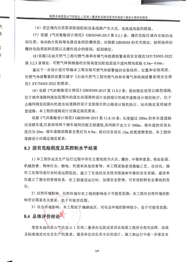 塔里木油田皮山氣田皮山1區(qū)塊二疊系杜瓦組試采項目地面工程安全預(yù)評價報告 |