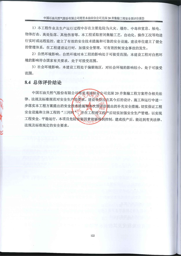 中國石油天然氣股份有限公司塔里木油田分公司克深20井集輸工程安全預(yù)評價報告
