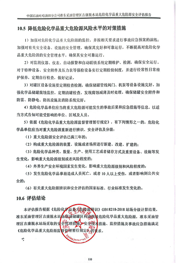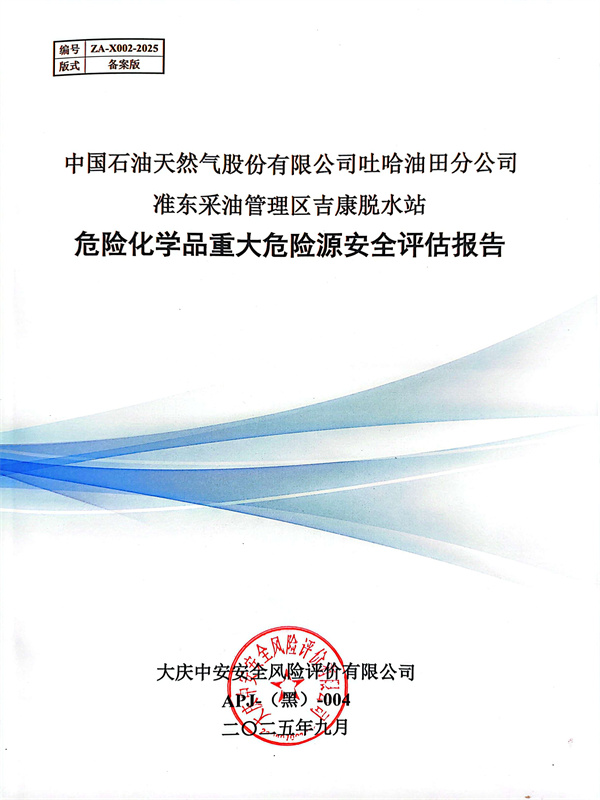 中國石油天然氣股份有限公司吐哈油田分公司準東采油管理區(qū)吉康脫水站危險化學品重大危險源安全評估報告