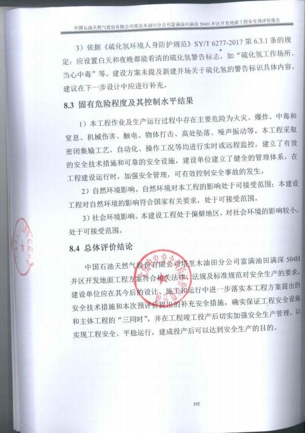 中國石油天然氣股份有限公司塔里木油田分公司富滿油田滿深504H井區(qū)開發(fā)地面工程 安全評價報告