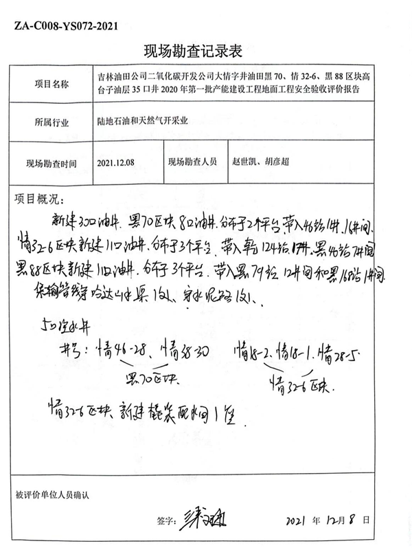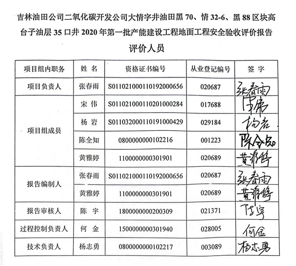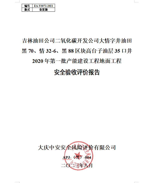吉林油田公司二氧化碳開發(fā)公司大情字井油田黑70、情32-6、黑88區(qū)塊高臺子油層35口井2020年第一批產能建設工程地面工程安全驗收評價報告 |