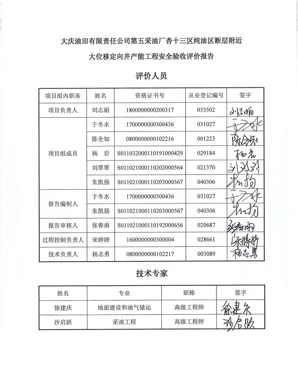 大慶油田有限責任公司第五采油廠杏十三區(qū)純油區(qū)斷層附近大位移定向井產(chǎn)能工程安全驗收評價 |