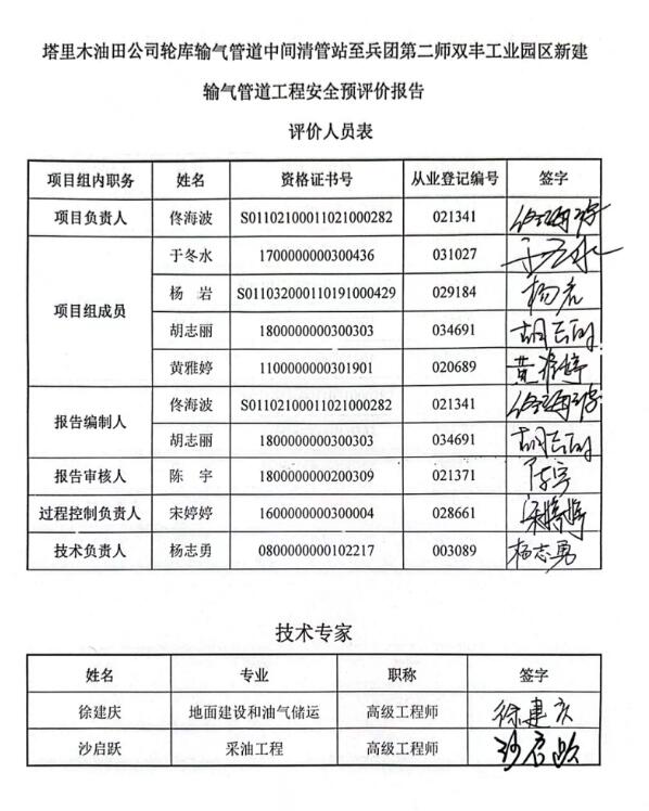 塔里木油田公司輪庫輸氣管道中間清管站至兵團第二師雙豐工業(yè)園區(qū)新建輸氣管道工程安全預(yù)評價報告 |