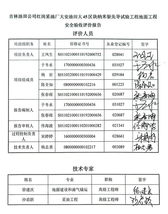 吉林油田公司紅崗采油廠大安油田大45區(qū)塊納米驅(qū)先導(dǎo)試驗(yàn)工程地面工程 安全評(píng)價(jià)報(bào)告