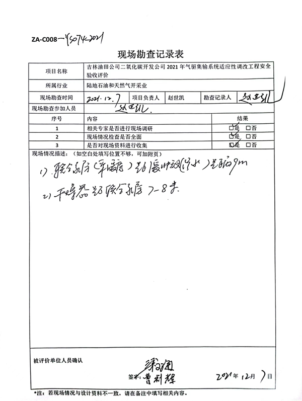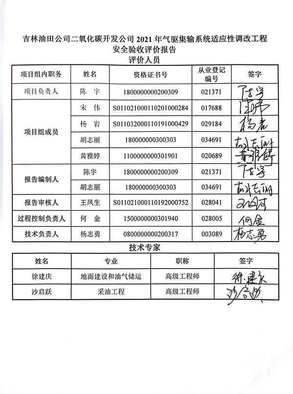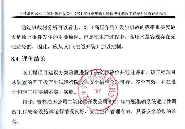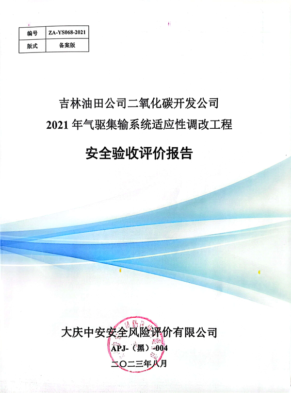 吉林油田公司二氧化碳開(kāi)發(fā)公司2021年氣驅(qū)集輸系統(tǒng)適應(yīng)性調(diào)改工程安全驗(yàn)收評(píng)價(jià)