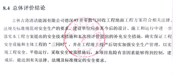 吉林吉港清潔能源有限公司德深93井零散氣回收工程地面工程方案符合相關(guān)法律、法規(guī)及標準規(guī)范對安全生產(chǎn)的要求。建設(shè)單位應(yīng)在其今后的設(shè)計、施工和運行中進一步落實本工程方案提出的安全技術(shù)措施和本次預(yù)評價提出的補充安全措施,確實保證工程安全設(shè)施和主體工程的“三同時”,并在工程竣工投產(chǎn)后切實加強安全生產(chǎn)管理,以實現(xiàn)工程安全、平穩(wěn)運行,采取安全對策措施后,本項目危險有害因素能夠得到控制,建成后,能達到有關(guān)法律、法規(guī)及標準規(guī)定的安全要求。 |