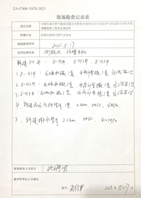 中國石油天然氣股份有限公司塔里木油田分公司克拉蘇氣田克深8區(qū)塊開發(fā)調(diào)整地面工程安全預(yù)評價(jià)報(bào)告