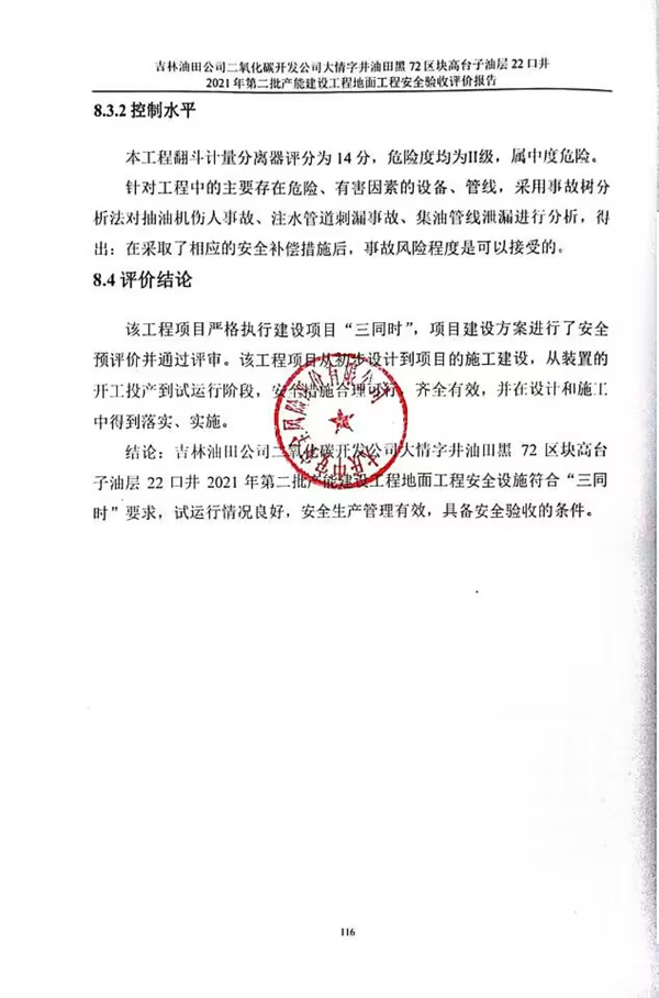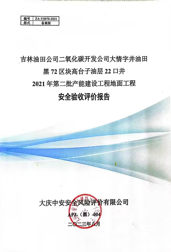對吉林油田公司二氧化碳開發(fā)公司大情字井油田黑72區(qū)塊高臺子油層22口井2021年第二批產(chǎn)能建設(shè)工程地面工程安全驗(yàn)收評價