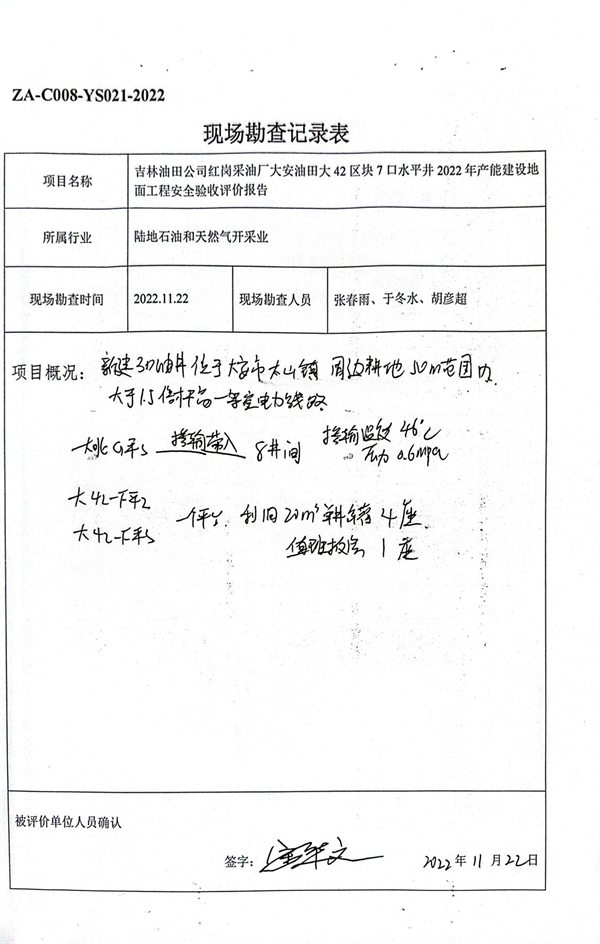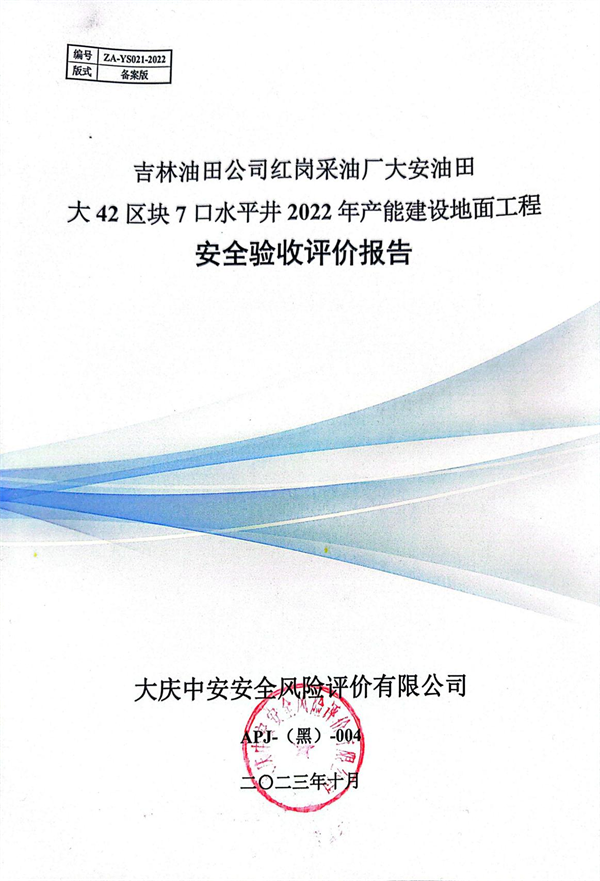 吉林油田公司紅崗采油廠大安油田大42區(qū)塊7口水平井2022年產(chǎn)能建設(shè)地面工程安全驗(yàn)收評(píng)價(jià)報(bào)告 |