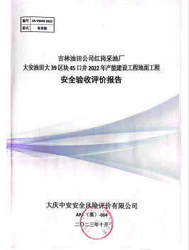 吉林油田公司紅崗采油廠大安油田大39區(qū)塊45口井2022年產(chǎn)能建設(shè)工程地面工程 安全驗(yàn)收評(píng)價(jià)報(bào)告