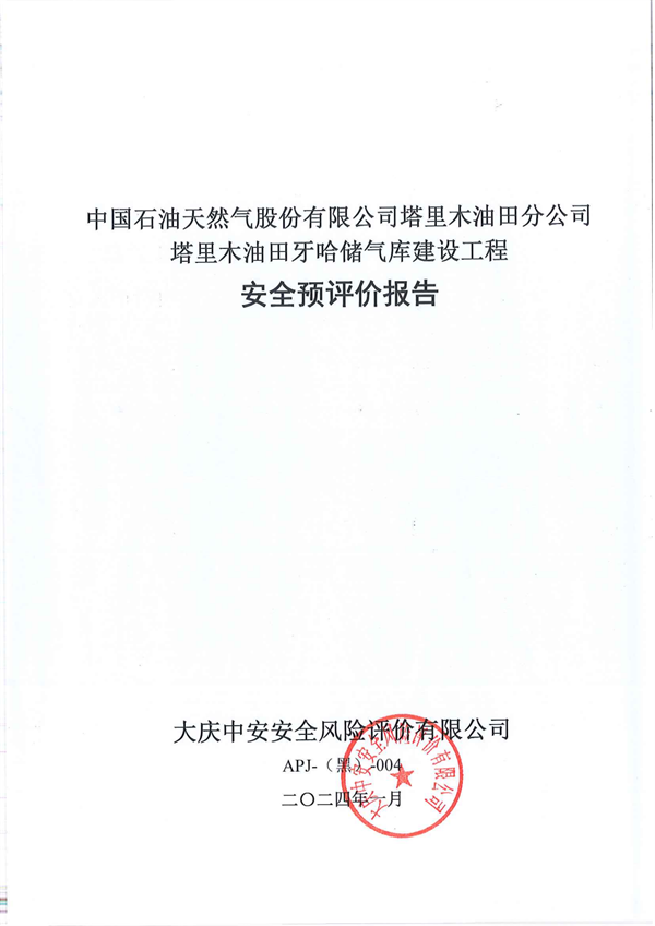 中國石油天然氣股份有限公司塔里木油田分公司塔里木油田牙哈儲(chǔ)氣庫建設(shè)工程 安全預(yù)評(píng)價(jià)報(bào)告