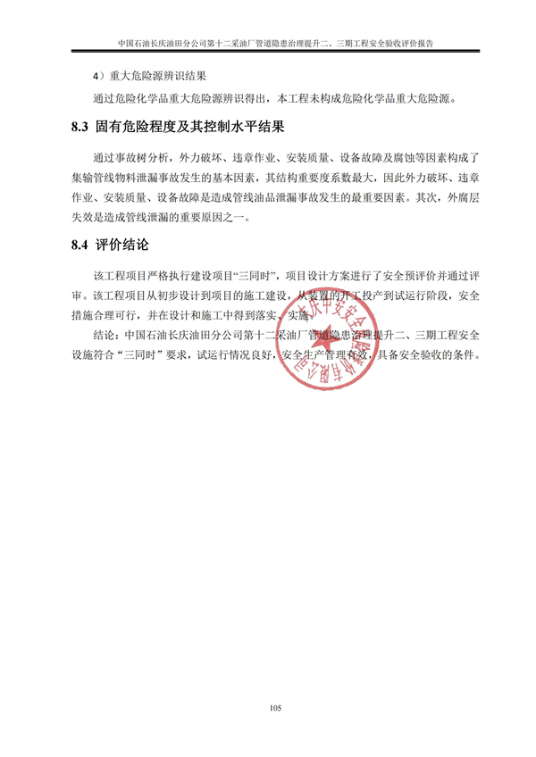 中國(guó)石油長(zhǎng)慶油田分公司第十二采油廠管道隱患治理提升二、三期工程安全驗(yàn)收評(píng)價(jià)報(bào)告 |