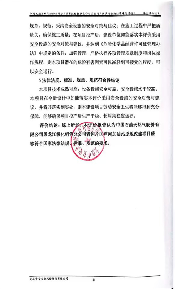 中國(guó)石油天然氣股份有限公司黑龍江綏化銷售分公司青岡片區(qū)蘆河加油站原地改建項(xiàng)目安全預(yù)評(píng)價(jià)