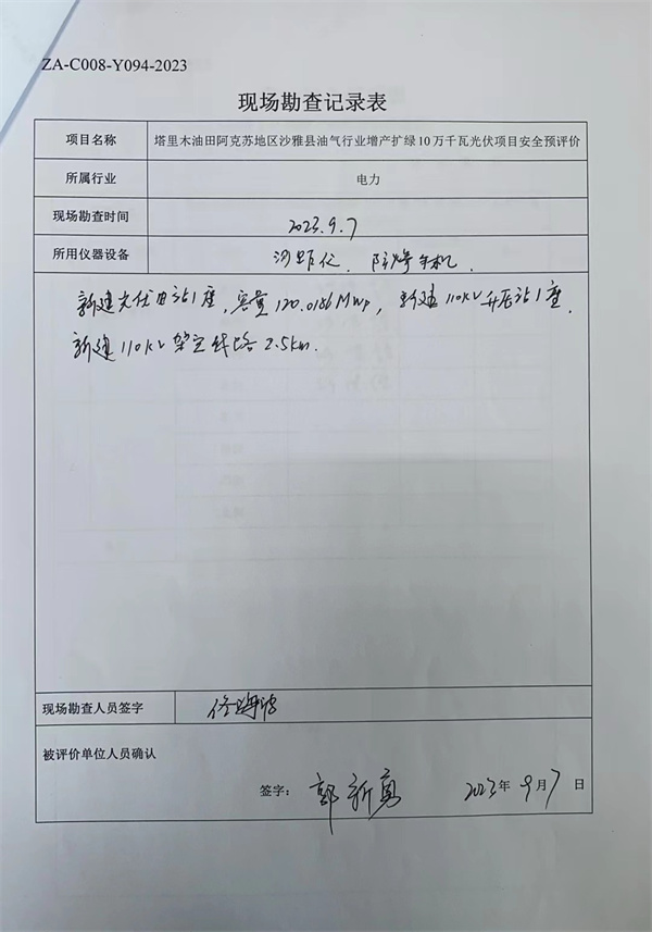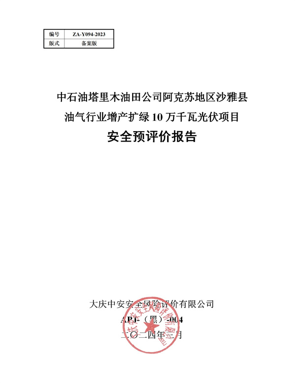 中石油塔里木油田公司阿克蘇地區(qū)沙雅縣油氣行業(yè)增產(chǎn)擴(kuò)綠10萬(wàn)千瓦光伏項(xiàng)目安全預(yù)評(píng)價(jià)報(bào)告 |