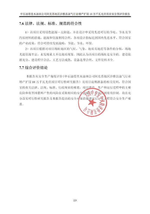 中石油塔里木油田公司阿克蘇地區(qū)沙雅縣油氣行業(yè)增產(chǎn)擴(kuò)綠10萬(wàn)千瓦光伏項(xiàng)目安全預(yù)評(píng)價(jià)報(bào)告