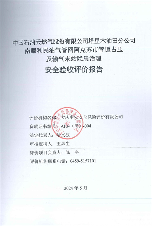 中國石油天然氣股份有限公司塔里木油田分公司南疆利民油氣管網(wǎng)阿克蘇市管道占壓及輸氣末站隱患治理安全驗收評價報告