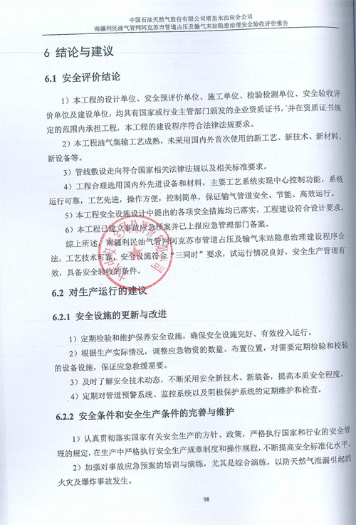 中國石油天然氣股份有限公司塔里木油田分公司南疆利民油氣管網(wǎng)阿克蘇市管道占壓及輸氣末站隱患治理安全驗收評價報告 |