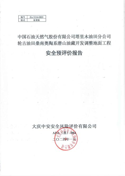 中國(guó)石油天然氣股份有限公司塔里木油田分公司輪古油田桑南奧陶系潛山油 藏開發(fā)調(diào)整地面工程安全預(yù)評(píng)價(jià)報(bào)告