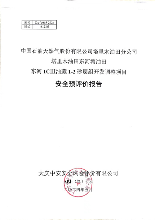 中國石油天然氣股份有限公司塔里木油田分公司塔里木油田東河塘油田東河1CⅢ油藏1-2砂層組開發(fā)調(diào)整項目安全預(yù)評價報告