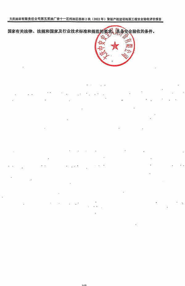 大慶油田有限責任公司第五采油廠杏十一區(qū)純油區(qū)西部2塊(2022年)聚驅產能建設地面工程安全驗收評價報告 |